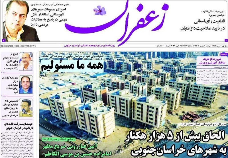 این صفحات نمایانگرمهمترین اخبار، تحولات و رویدادهای اجتماعی، سیاسی، اقتصادی و فرهنگی استان و کشور هستند و نگاه رسانهها را به مسائل روز خراسان جنوبی منعکس میکنند.