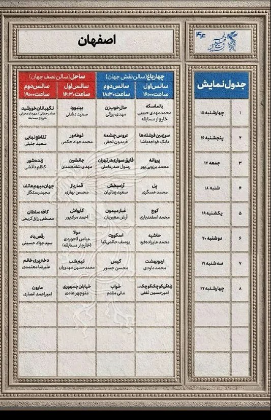 جدول اکران چهل و چهارمین جشنواره فیلم فجر در اصفهان منتشر شد