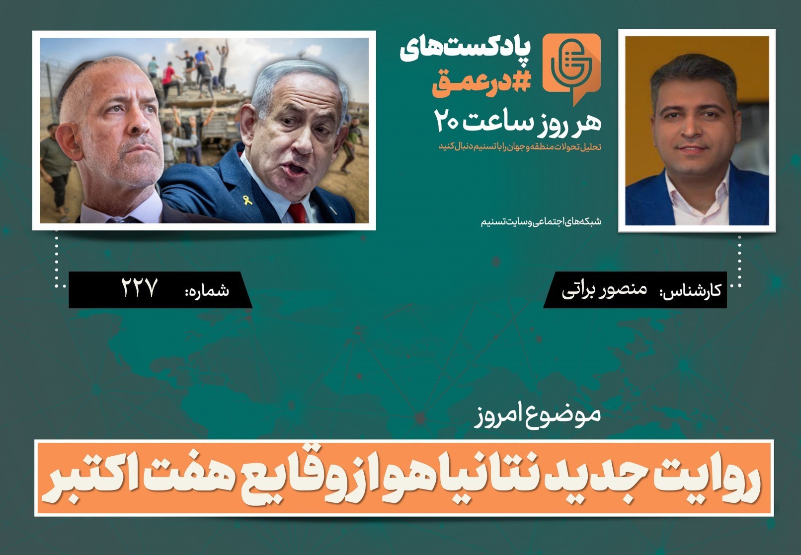 به گزارش گروه بینالملل خبرگزاری تسنیم، دویست و بیست و هفتمین شماره از پادکست «در عمق» که به بررسی مهمترین روندها، تحولات و همچنین شخصیتها در غرب آسیا و جهان میپردازد، روز شنبه 18 بهمن ماه 1404 ضبط و منتشر شد. در این شماره «منصور براتی»، کارشناس مسائل رژیم صهیونیستی به بررسی روایت جدید بنیامین نتانیاهو از وقایع هفت اکتبر 2023 میپردازد.
