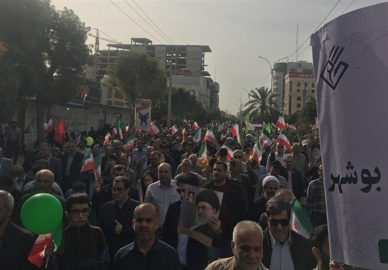مردم بوشهر با در دست داشتن پرچمهای سهرنگ جمهوری اسلامی ایران، تصاویر حضرت امام خمینی(ره) و مقام معظم رهبری و سردادن شعارهای انقلابی، حمایت قاطع خود را از نظام اسلامی و محکوم کردن جنایات آمریکا و اسرائیل غاصب اعلام کردند. این حضور پرمعنا نشان داد که پیوند ملت با انقلاب، امام راحل و رهبری معظم انقلاب، پیوندی عمیق، آگاهانه و ناگسستنی است.