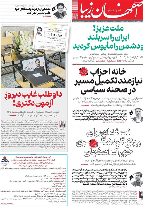 منتخب صفحات نخست روزنامهها به مخاطبان این امکان را میدهد که در یک نگاه، مهمترین مطالب و تیترهای خبری استان اصفهان را مرور کنند و تصویر جامعی از اولویتها و دغدغههای رسانهای روز را به دست آورند.