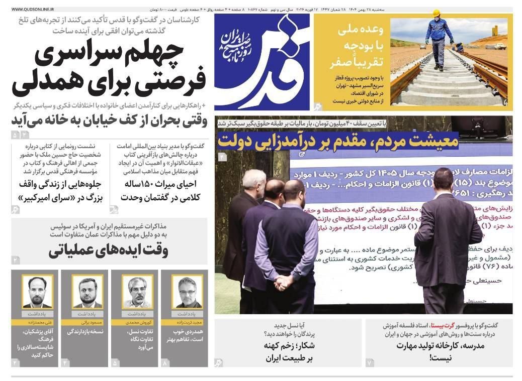 صفحه اول مطبوعات سه شنبه 28بهمن