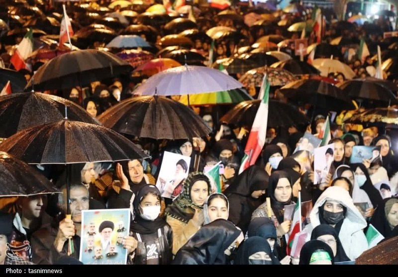 در بخش‌هایی از این اجتماع، شرکت‌کنندگان با سر دادن شعارهای حماسی و معنوی، آمادگی خود را برای پاسداری از ارزش‌های انقلاب و ادامه راه عزت و استقلال کشور اعلام کردند، فضای مراسم آکنده از حال و هوای معنوی، اشک و عشق بود و باران، خود نمادی از پاکی دل‌های سوگوار مردم شد.