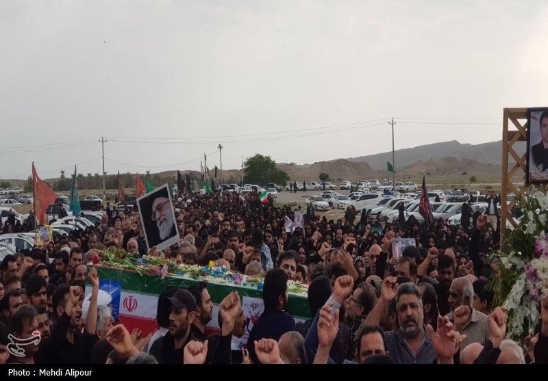 شرکتکنندگان در این آیین معنوی، با سردادن شعارهایی، چون «لا اله الا الله»، «الله اکبر»، «این گل پرپر ما هدیه به رهبر ما»و «خونی که در رگ ماست هدیه به رهبر ماست» با نوای «ای رهبر آزاده، شهادتت مبارک» و «نیروهای نظامی، انتقام، انتقام» پیکر مطهر شهدا را تا آرامگاه ابدی همراهی کردند.