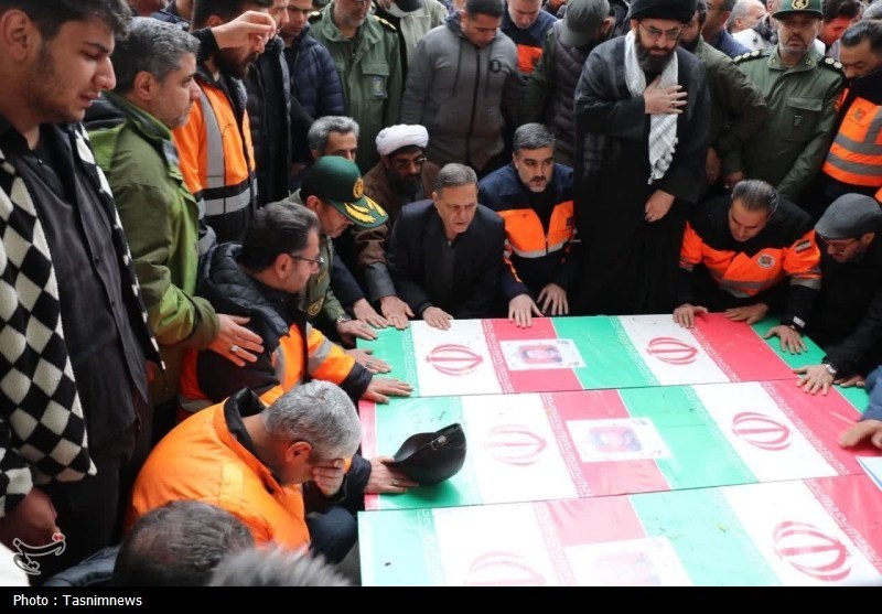 مراسم تشییع این شهدای خدمت از مقابل مسجد جامع زنجان آغاز شد و خیل عظیم مردم با نوای «خونی که در رگ ماست هدیه به رهبر ماست» و شعارهای «مرگ بر آمریکا» و «مرگ بر اسرائیل» پیکر پاک این شهدا را تا بهشت فاطمه (سلاماللهعلیها) بدرقه کردند.