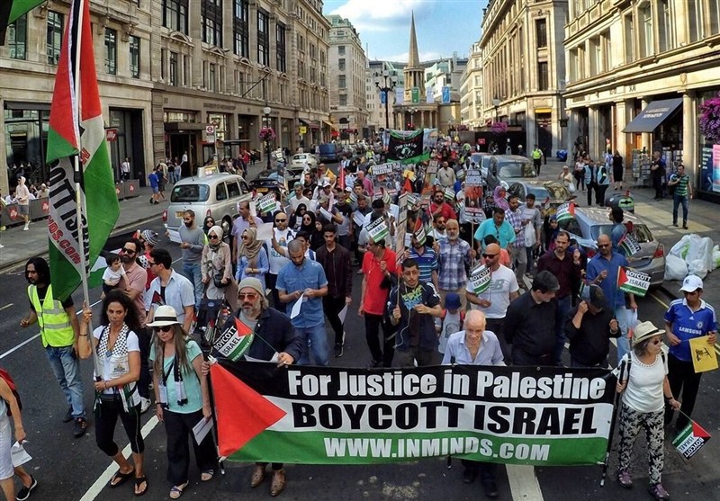 شرکتکنندگان که ازمناطق مختلف انگلیس در این حرکت اعتراضی حضور یافته بودند، ضمن تجدید میثاق با آرمان فلسطین، خشم و محکومیت خود را از تجاوز نظامی رژیم صهیونیستی و ایالات متحده علیه ایران به نمایش گذاشتند.