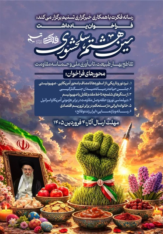 سرویس فرهنگی خبرگزاری تسنیم و رسانه فکرت، در نظر دارد همزمان با فرا رسیدن سال نو، پرونده ویژه‌ای را با عنوان «سینِ هشتم؛ سلحشوری» منتشر کند. ما در این سفره هفت‌سین نمادین، در کنار سنجد (خرد)، سیب (سلامت) و سبزه (تولد دوباره)، سین هشتمی را می‌نشانیم که رمز بقای ایران مقتدر در برابر اهریمنان زمانه است.