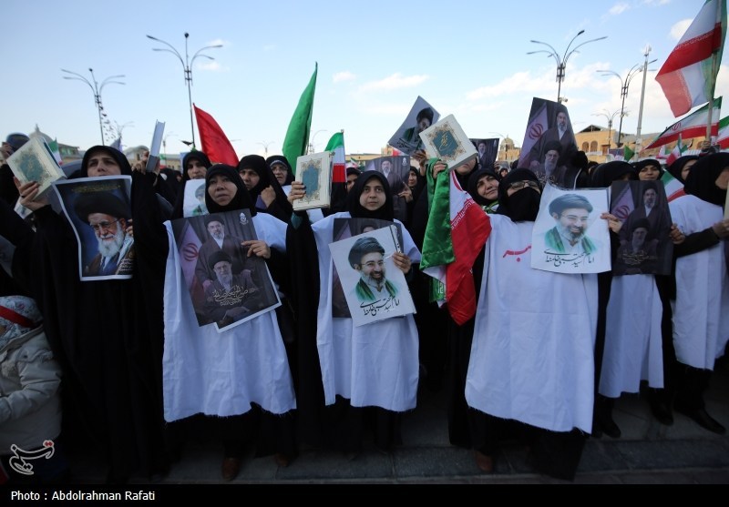 بانوان حاضر در میدان، با فریادهای رسا و کوبنده شعارهایی همچون «الله‌اکبر» «مرگ بر آمریکا و اسرائیل»، «هیهات من‌الذله» و «این همه لشکر آمده به عشق رهبر آمده»، « نه سازش نه تسلیم، نبرد با آمریکا» انزجار خود را از دشمنان انقلاب و اسلام اعلام و بر تبعیت از رهبری تأکید نمودند.
