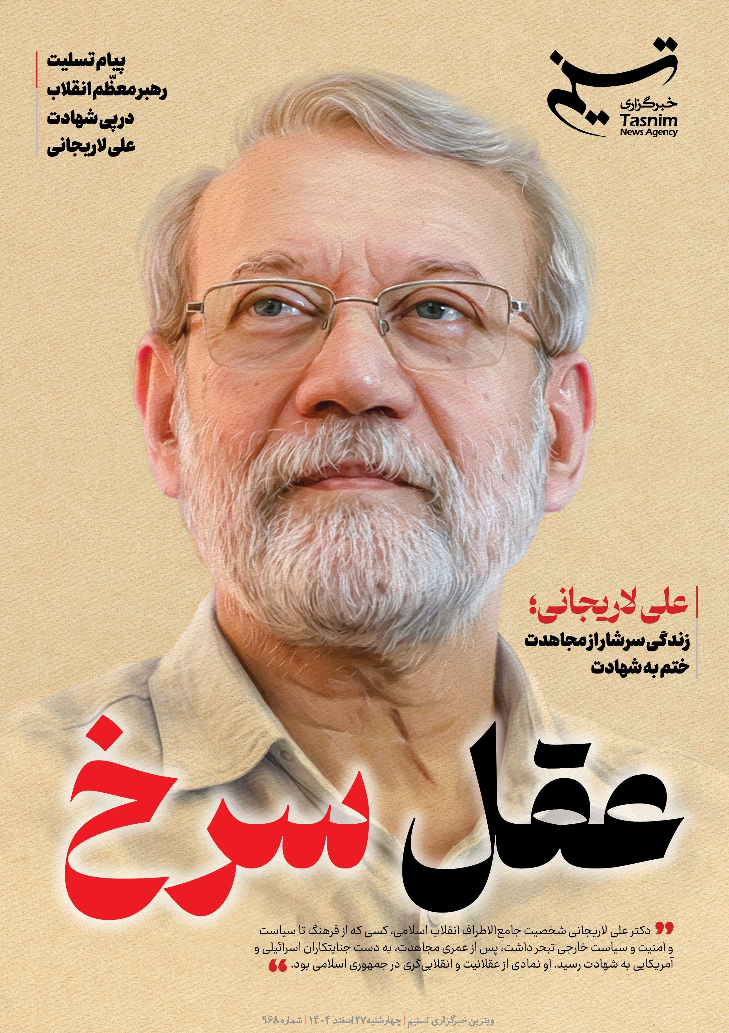 به گزارش خبرگزاری تسنیم، دکتر علی لاریجانی، شخصیت جامعالاطراف انقلاب اسلامی، کسی که از فرهنگ تا سیاست و امنیت و سیاست خارجی تبحر داشت، پس از عمری مجاهدت، به دست جنایتکاران اسرائیلی و آمریکایی به شهادت رسید. او نمادی از عقلانیت و انقلابیگری در جمهوری اسلامی بود.