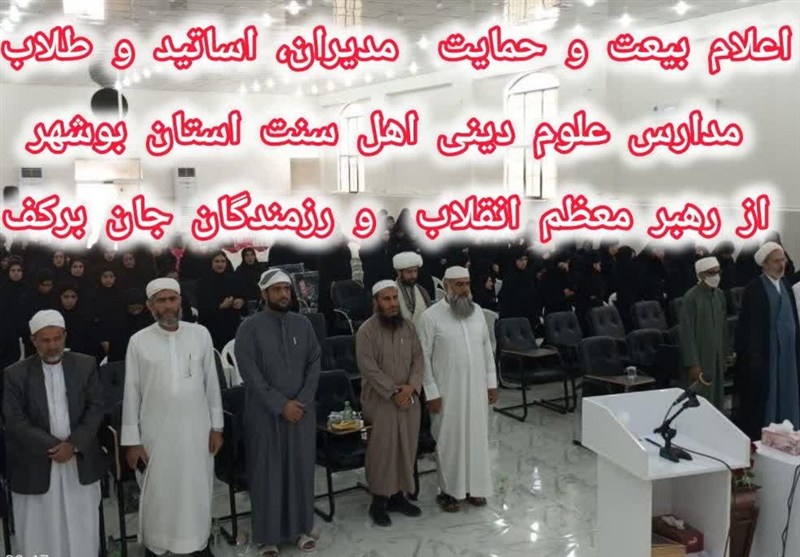 به گزارش خبرگزاری تسنیم از بوشهر، در پی اعلام نظر مجلس خبرگان رهبری درباره انتخاب رهبر جدید انقلاب اسلامی آیتالله سید مجتبی حسینی خامنهای، جمعی از مدیران، اساتید و طلاب مدارس علوم دینی اهل سنت در استان بوشهر با انتشار بیانیههایی ضمن تسلیت درگذشت رهبر پیشین انقلاب، از این تصمیم اعلام حمایت کردند.