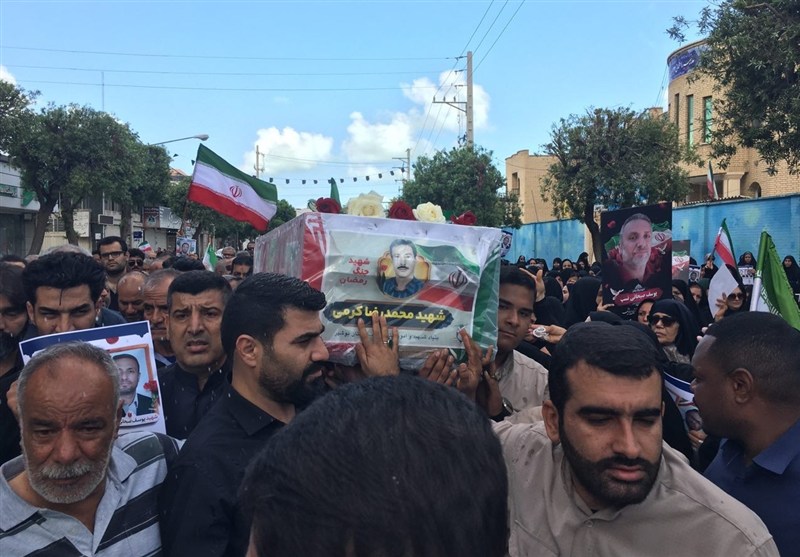 در این آیین که از بسیج مرکزی بوشهر تا گلزار شهدای بهشت صادق این شهر برگزار شد شرکتکنندگان با شعارهای حسین حسین شعار ماست شهادت افتخار ماست، مرگ بر آمریکا مرگ بر اسرائیل و انتقام انتقام شهدای والامقام را بدرقه کردند.