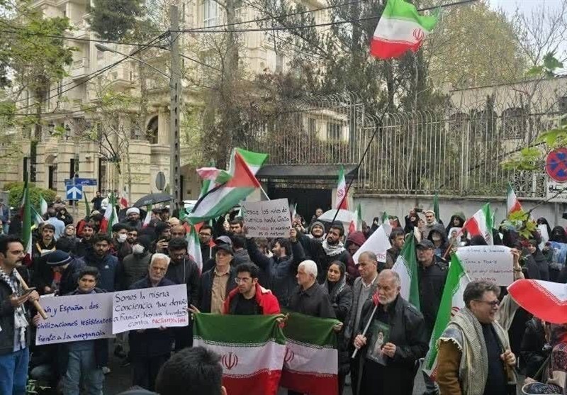 تجمع دانشجویان مقابل سفارت اسپانیا برای قدردانی از مواضع ملت اسپانیا