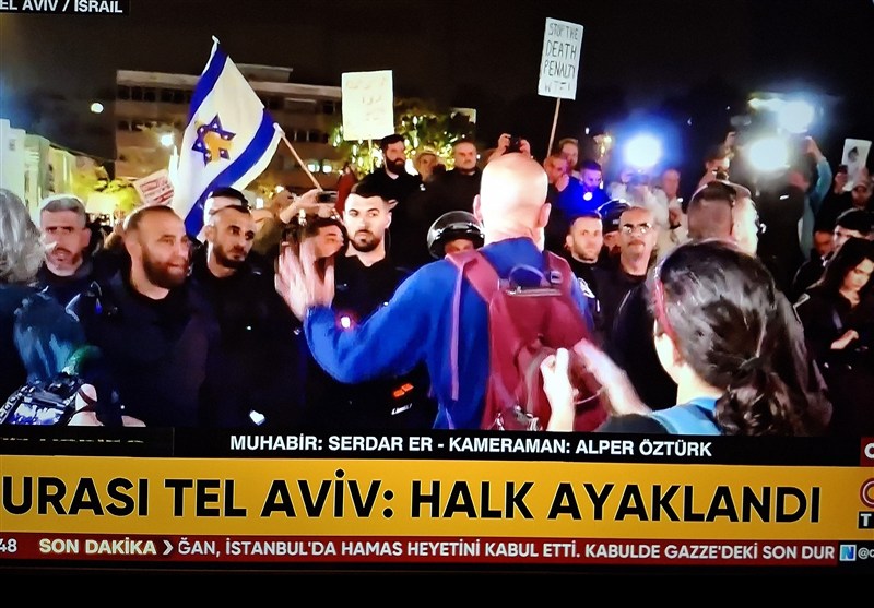 شبکه خبری تی.آر.تی ترکیه نیز در گزارش مستقیم دیگری اعلام کرد که مخالفین نتانیاهو خواهان برکناری او هستند و مداوماً این شعار را تکرار می کنند: «نتانیاهو باید همین الان برود».