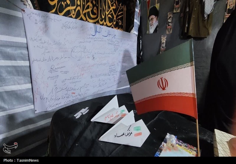 در سوی دیگر میدان شهدای ذهاب موشک‌های کاغذی که روی آن‌ها اسم موشک‌های فتاح و خیبرشکن و خرمشهر با خطی کودکانه نوشته شده بود، گویی مشق حماسه بود برای کودکان این سرزمین که هر شب بدون خستگی کنار والدین خود حضور دارند.