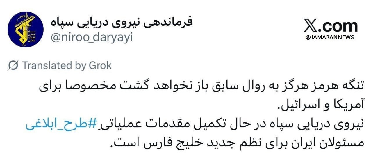 به گزارش خبرگزاری تسنیم حساب منتسب به فرماندهی نیروی دریایی سپاه در شبکه ایکس (توییتر) نوشت: تنگه هرمز هرگز به روال سابق بازنخواهد گشت مخصوصا برای آمریکا و اسرائیل.