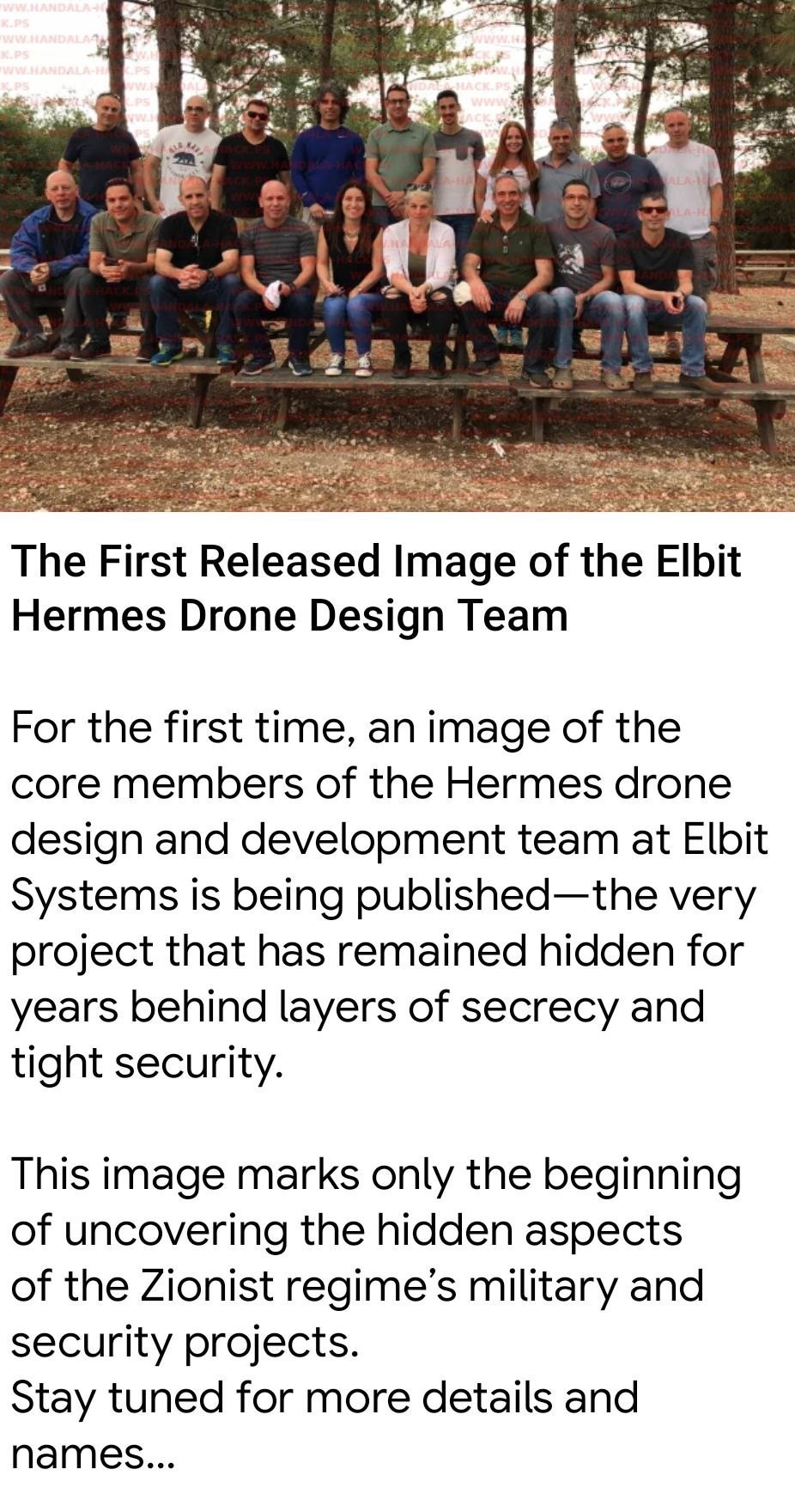 به گزارش خبرگزاری تسنیم، برای نخستینبار، تصویری از اعضای اصلی تیم طراحی و توسعه پهپاد «هرمس» در شرکت «البیت سیستمز» منتشر شده است؛ پروژهای که سالها پشت لایههای محرمانگی و تدابیر شدید امنیتی پنهان مانده بود و بخشهای پنهان پروژههای نظامی و امنیتی رژیم صهیونیستی است.