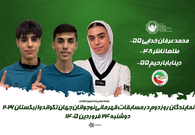 به گزارش خبرگزاری تسنیم، در ادامه این دوره از مسابقات که در مجموعه ورزشی المپیک شهر تاشکند جریان دارد، فردا دوشنبه 24 فروردین ماه تکواندوکاران اوزان 55- کیلوگرم دختران و 48- و 55- کیلوگرم پسران به مبارزه خواهند پرداخت که دینا بابارحیم در گروه دختران، طاها ناظر و محمد عرفان خدایی در گروه پسران به نمایندگی از کشورمان روی «شیاپ چانگ» می روند.