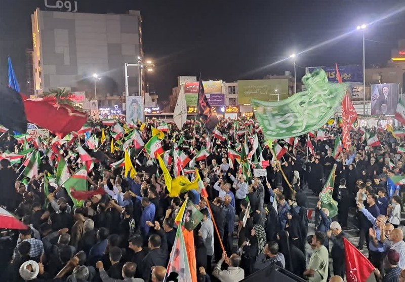 مردم بصیر و آگاه بوشهر در عرصههای مختلف تاریخی برای حمایت از نظام اسلامی با حضور یکپارچه حماسه خلق کردنددر 45 شب متوالی با هر شرایط جوی و حتی حملات دشمن آمریکایی صهیونی در میدان اقتدار خود را نشان دادهاند.