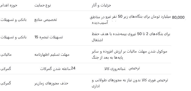 خلاصه اقدامات حمایتی وزارت اقتصاد در دوره جنگ و پساجنگ: