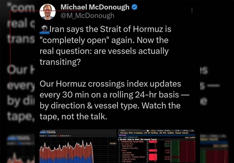 به گزارش خبگزاری تسنیم، «مایکل مک‌دانا» از سردبیران اقتصادی خبرگزاری بلومبرگ نوشت: ایران می‌گوید تنگه هرمز دوباره «کاملاً باز» شده است. حالا سوال اصلی این است: آیا کشتی‌ها واقعاً در حال عبور هستند؟