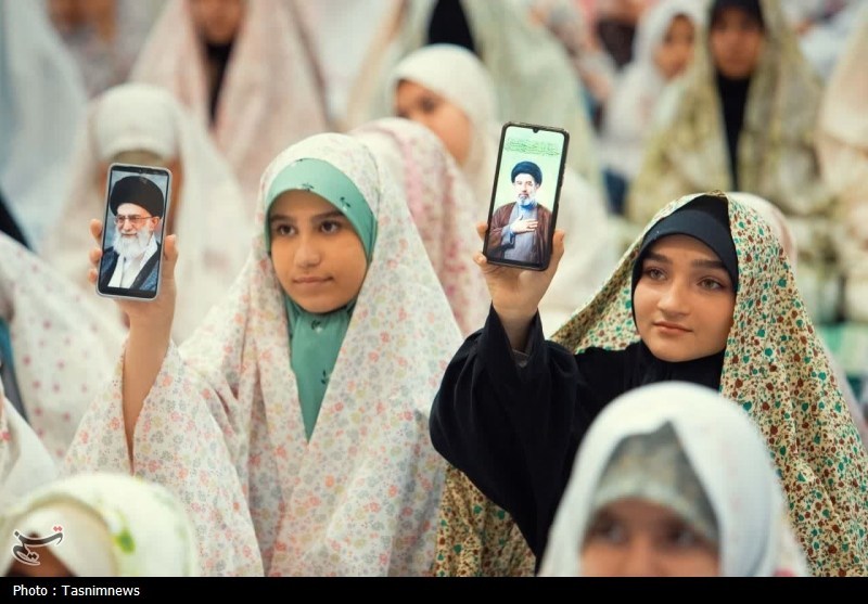 بر اساس مشاهدات خبرنگار تسنیم ، جمع زیادی از دختران زنجانی پیش از آغاز رسمی مراسم در مصلی حاضر شده بودند؛ چادر نمازهای رنگی، جانمازهای کوچک و لبخندهای سرشار از شوق، صحنههایی روحافزا خلق کرده بود که عطر حضور بانوان جوان مؤمن را در فضای مصلی جاری میکرد.
