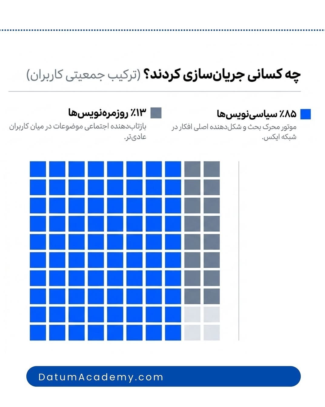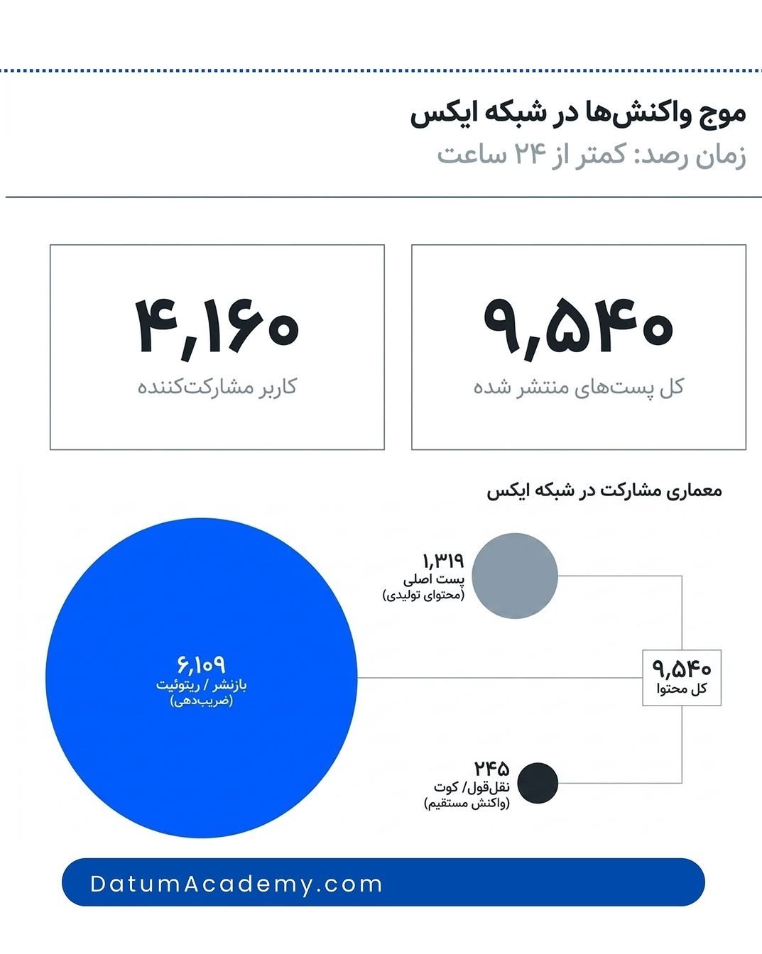 در این بین هزار و 319 پست نوشته شده که شش هزار و 109 مرتبطه بازنشر شده‌اند و 245 کاربر آنها را کوت کرده‌اند.