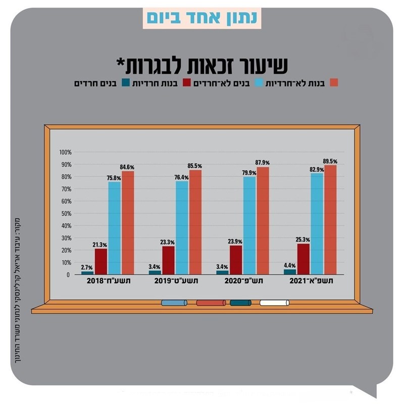 אפילו לא 5%: שיעור הזכאות לבגרות של בנים חרדים רחוק מהאוכלוסייה