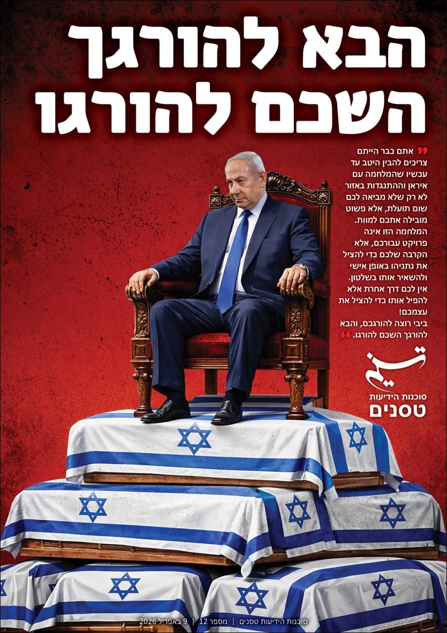 אתם כבר הייתם צריכים להבין היטב עד עכשיו שהמלחמה עם איראן וההתנגדות באזור לא רק שלא מביאה לכם שום תועלת, אלא פשוט מובילה אתכם למוות. המלחמה הזו אינה פרויקט עבורכם, אלא הקרבה שלכם כדי להציל את נתניהו באופן אישי ולהשאיר אותו בשלטון. אין לכם דרך אחרת אלא להפיל אותו כדי להציל את עצמכם!
