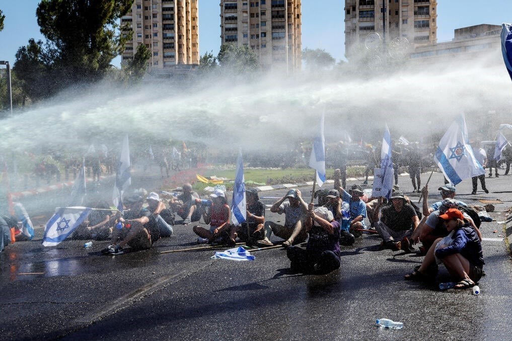 עימותים נרשמו בין כוחות משטרה למפגינים שצועדים על דרך בגין בירושלים. שוטרים תועדו מפנים בכוח תוך כדי שימוש באגרופים כמה מהמוחים. במקביל הגיעה לאזור מכת"זית לקראת שימוש אפשרי של התזת מים לעברם של המפגינים. מאות מוחים הצליחו לפרוץ מחסום אנושי של שוטרים וממשיכים לצעוד על דרך בגין.