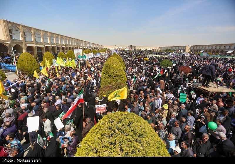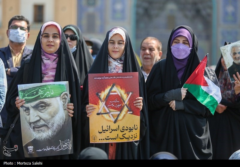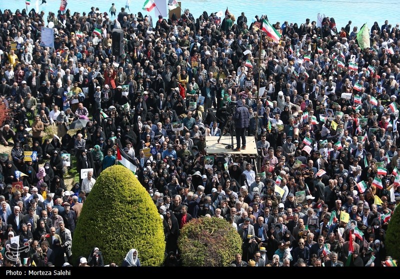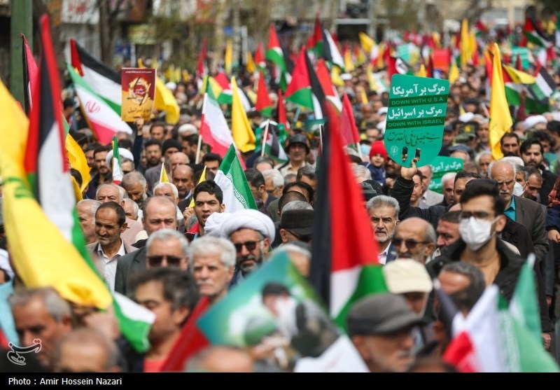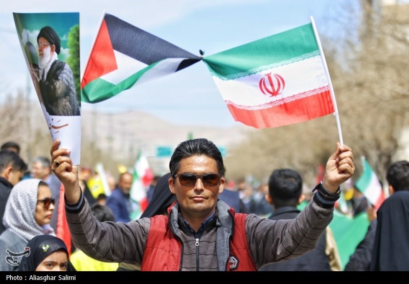 בחסדי אלוהים, האומה האצילית והמפוארת של איראן עומדת לצד כל מדינות העולם שואפות הזכויות ושוחרות החירות, בכך שהיא משתתפת בהתלהבות ובצעדת יום קודס הבינלאומית, מגנה את פשעי המלחמה של המשטר הציוני בעזה והפלסטין הכבושה, והוקעת את פניהם של ארגון השחורים והשפלה הבינלאומית זכויות.