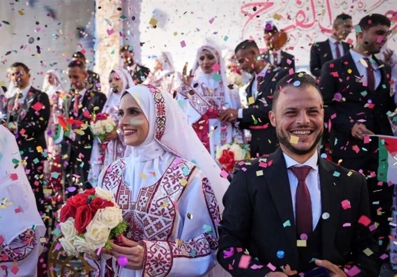 חמישים וארבעה זוגות פלסטינים נישאו בטקס חתונה המונית בעזה. הטקס התקיים ביום שלישי (2 בדצמבר), והביא רגע של תקווה לזוגות הצעירים לאחר שנתיים של סכסוך שגבה את חייהם של רבים מיקיריהם.