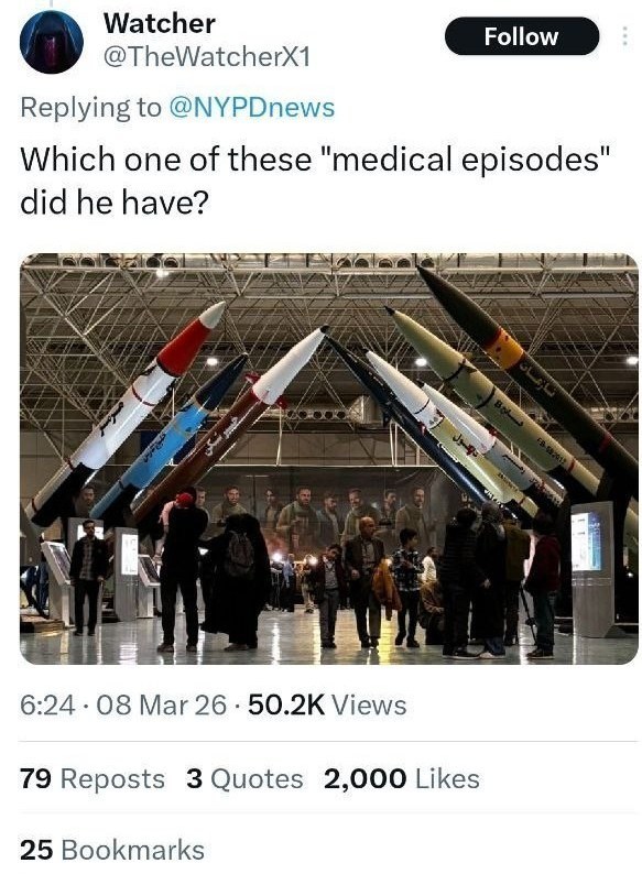 גולש אחר פרסם תמונה המציגה סוגים שונים של טילים איראניים וכתב: "איזה מהסיבוכים הרפואיים האלה היה לו?"