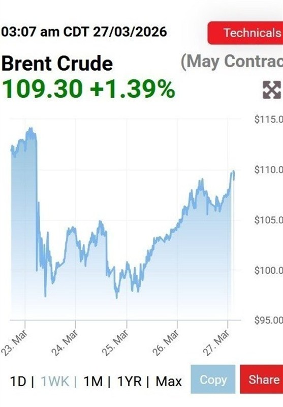 עם זאת, למרות ניסיונות אלו, מחיר נפט ברנט חצה היום שוב את רף 109 הדולר.