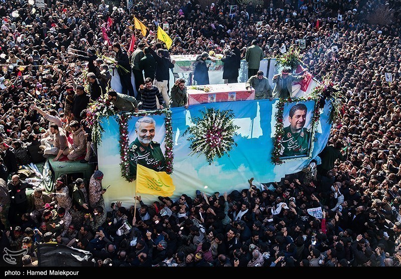 Генерал Касем Сулеймани, командующий силами «Кудс» Корпуса стражей исламской революции, был убит и погиб мученической смертью в 1:20 утра в пятницу, 3 января 2020 года, по прямому приказу президента США Дональда Трампа после атаки беспилотника американских войск на его автомобиль в аэропорту Багдада. Тела погибшего генерал-лейтенанта Касема Сулеймани и его соратников были похоронены в городах Мешхед, Тегеран, Кум и Керман. В Иране объявлен национальный траур после гибели генерала Касема Сулеймани. По оценкам, на этих церемониях присутствовало около 25 миллионов человек.