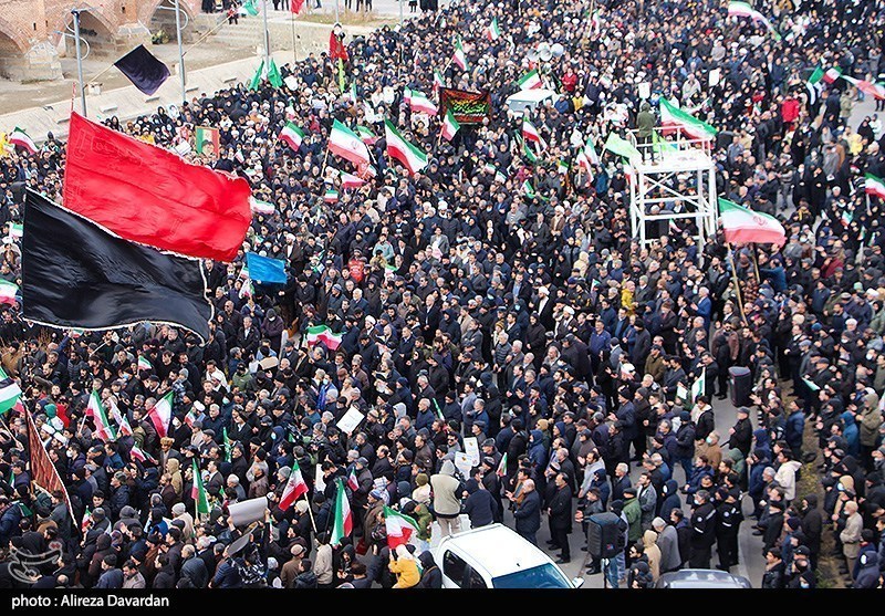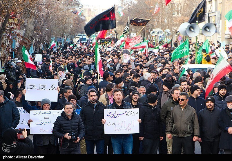 Народ Ирана провели массовые демонстрации по всей стране, выражая осуждение недавних антииранских беспорядков. Они скандировали лозунги, требуя прекращения насилия и возмездия виновным в насилии и их иностранным сторонникам, таким как США и сионистский режим.