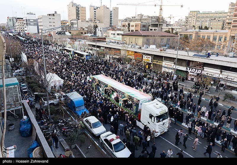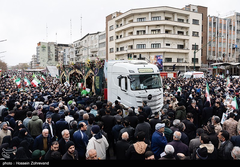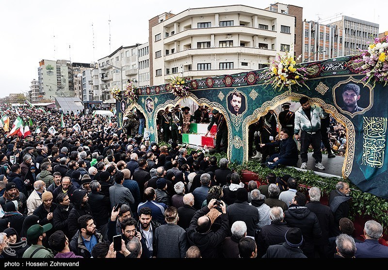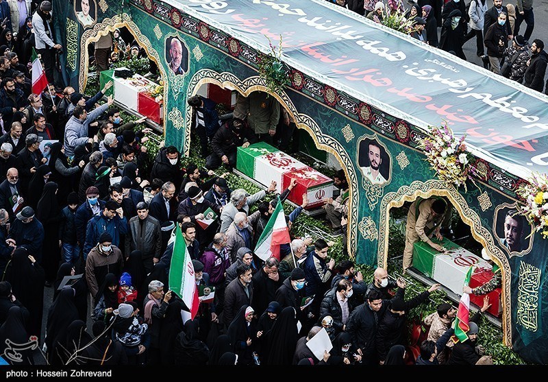 Среда 14 января 2026 г. в столице Ирана участники церемонии похоронили около 100 мучеников, включая военных и гражданских лиц, погибших от рук вооружённых террористов во время недавних насильственных беспорядков. Похоронная процессия началась перед Университетом Тегерана, где скорбящие несли гробницы мучеников, покрытые флагом Ирана.