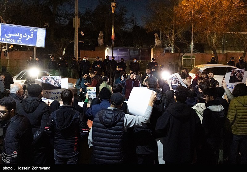 В связи с решением Европейского парламента о запрете въезда иранских дипломатов в этот парламент, иранские студенты вчера, в четверг, 14 января, после прощания с мучениками недавних беспорядков в Иране, провели протестное собрание перед посольством Англии в Тегеране.