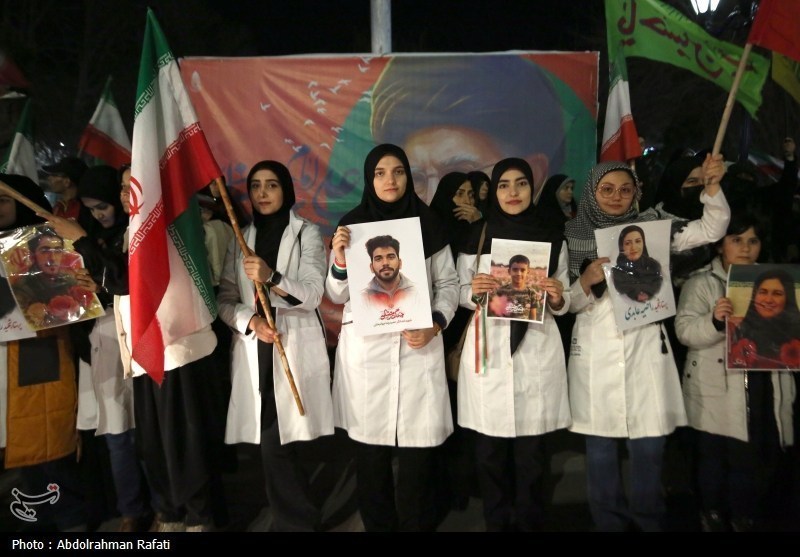 Некоторые представители медицинского и санитарного персонала в провинции Хамадан собрались у мавзолея Хакима Абу Али Ибн Сины, чтобы осудить террористические американо-сионистские атаки на медицинские, образовательные и университетские учреждения страны.