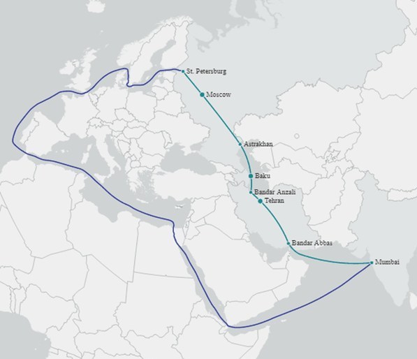 Коридор «Север–Юг» предлагает альтернативный вариант, позволяющий доставлять российские грузы по железнодорожной сети через Азербайджан, север Ирана и далее в порт Бендер-Аббас, откуда они направляются в Индию и другие страны Южной Азии.