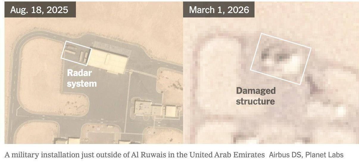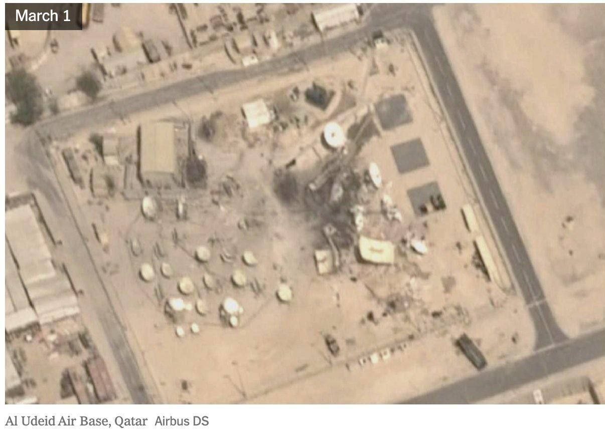 По сообщению Тасним новости, проанализированные изданием спутниковые снимки показывают, что ракетные и беспилотные удары Ирана нанесли ущерб объектам связи и радиолокационной инфраструктуры на нескольких американских военных базах по всему Ближнему Востоку, в том числе в Бахрейне, Катаре, Кувейте, Саудовской Аравии и Объединённых Арабских Эмиратах.