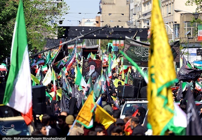 Участники несут портреты и скандируют лозунги, выражая свою приверженность и уважение к павшему лидеру революции. Они также подтверждают свою присягу верности новому Верховному лидеру Исламской революции — Аятолле Сейеду Муджтабе Хоссейни Хаменеи.