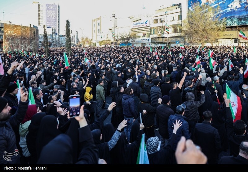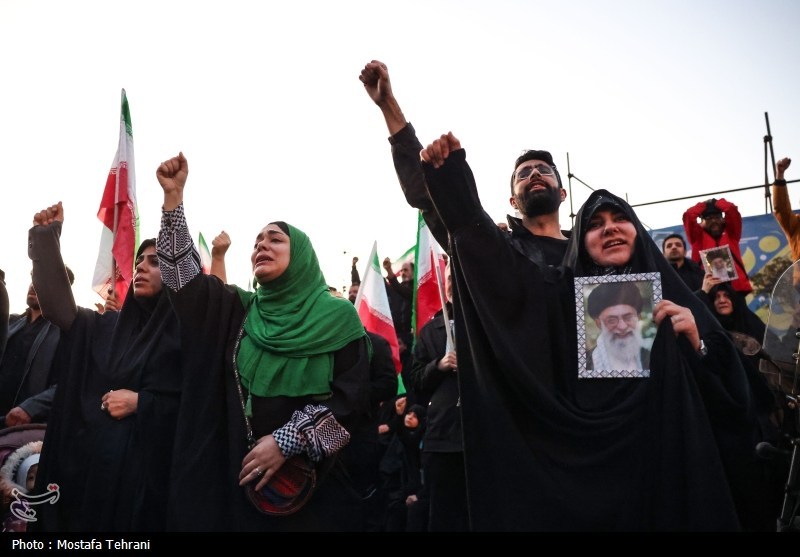İnkılap Meydanı’nda toplanan kalabalık, “Haydar Haydar” sloganları atarak, İslam Cumhuriyeti’nin kutsal ideallerine bağlılıklarını yeniledi ve bu emperyalist suçun faillerine karşı öfke ve nefretlerini dile getirdi.
